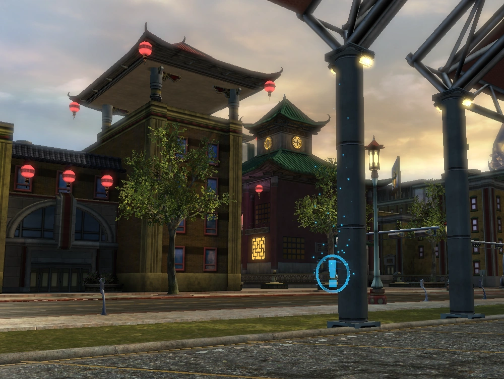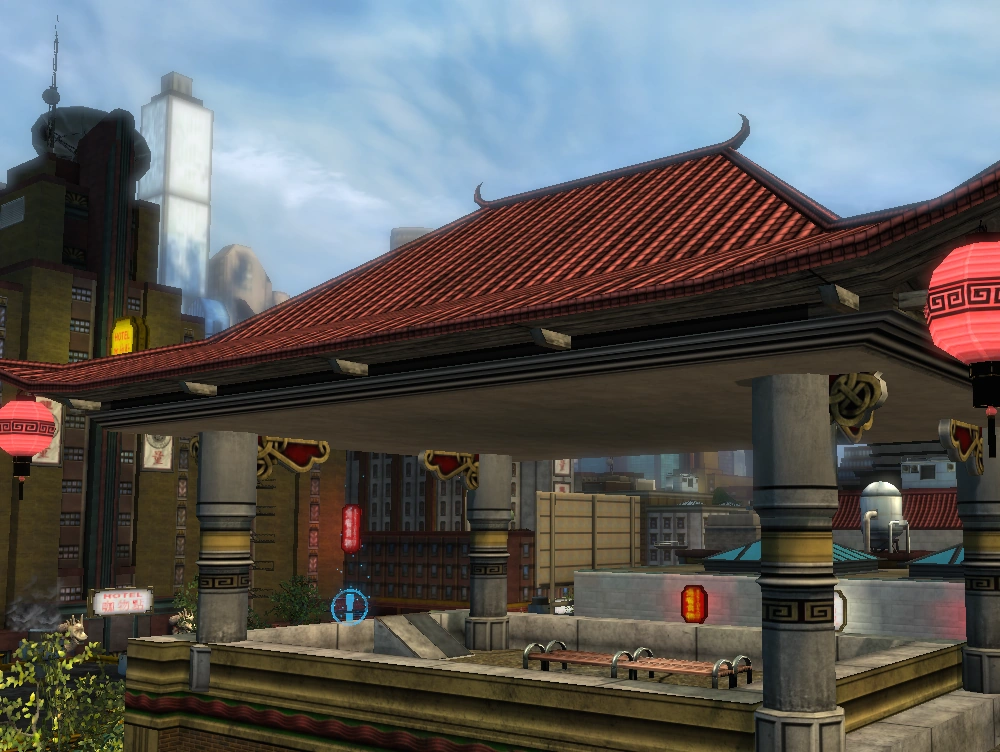 Location: Rooftop level, beneath the eaves of a pagoda-style sitting are on a roof approximately one and a half blocks north of the Mannheim's Chinese Theater map marker.