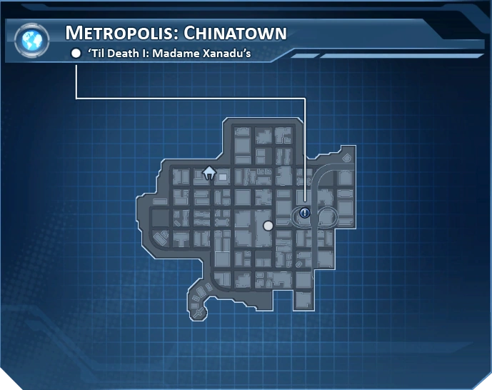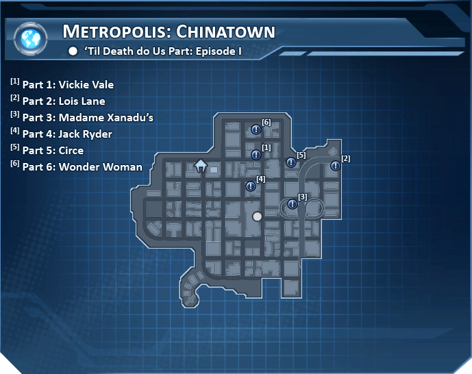 'Til Death do Us Part: Episode 1 is a collection of Briefings that can be found scattered across the Chinatown district of the city of Metropolis. There are six briefs that comprise this set, all found approximately due east of the Chinatown Police Station.