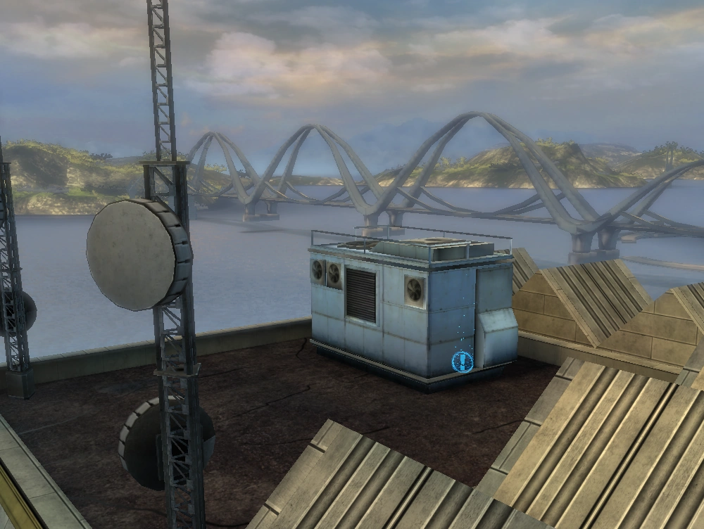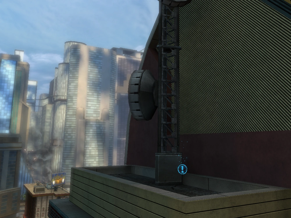 Location: Rooftop level, on the north side of a skyscraper; approximately one and a half blocks east and one block north of the Mannheim's Chinese Theater map marker.