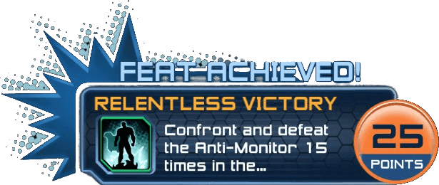 | Relentless Victory | Centennial Collapse Raid: Defeat the Anti-Monitor 15 times | 25 Points | 2017- |