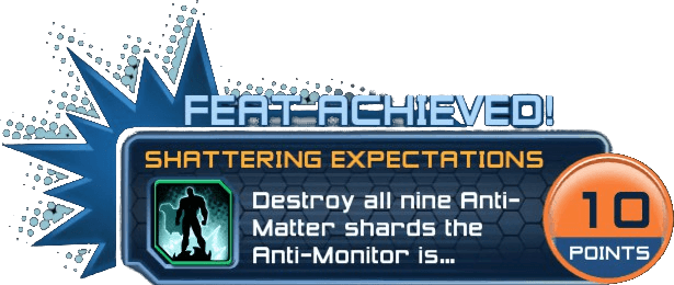 | Hold the Line | Centennial Collapse Raid: Defeat the Anti-Monitor after preventing every Shadow Demon from reaching him | 25 Points | 2017- |