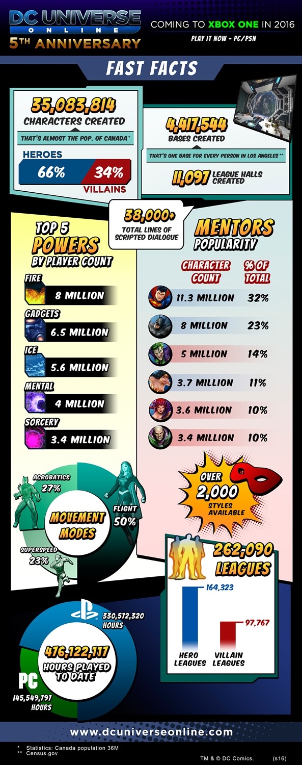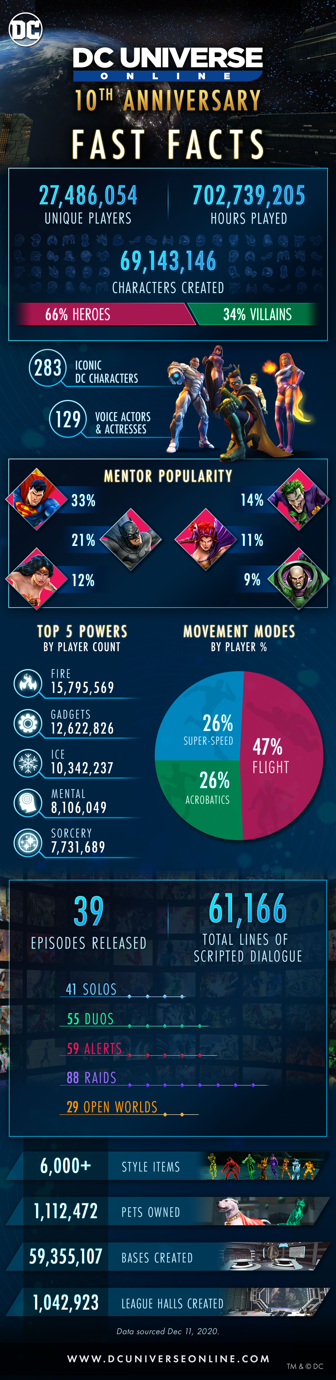 - DCUO made it into the 2016 Guinness Book of World Records for largest voice acting cast in an MMO, at 500 voice actors across English, French, German, Italian and Spanish.