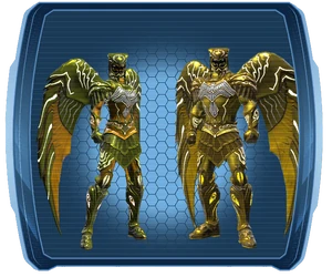 The Hera's Strength is a costume style set and an Iconic Battle Suit for Magic-based Heroes. Named for Hera, Greek goddess of women and marriage, and the wife of Zeus, this armor comes from Olympus itself, with each armor piece created to favor one of the attributes of the various Greek Gods.