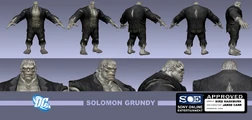 - Solomon Grundy was originally supposed to be fighting Wonder Woman in the "Who do you trust" trailer but was replaced by Metallo because of the ESRB rating.