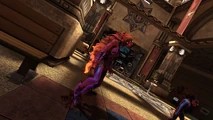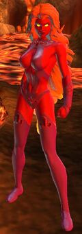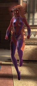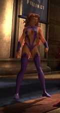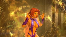 The following page displays promotional images, FMVs, scans, concepts and screenshots of Starfire from DC Universe Online.