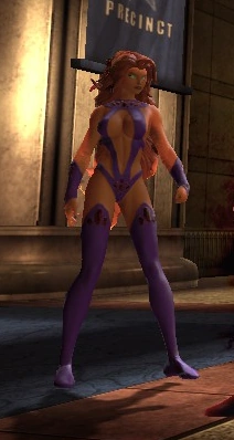 Starfire is a hero and member of the Teen Titans. She seeks to aid her friend Raven in shaking off the evil corruption of her father, Trigon, before she inadvertently unleashes his power upon the Earth.