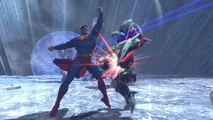 The following page shows promotional images, FMVs, scans, concepts and screenshots of Superman from DC Universe Online.