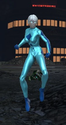 The Superpowered Heroine is an Exobyte enhanced New Hero. Once an ordinary citizen until Future Lex Luthor unleashed a wave of Exobytes upon the Earth, she now works with the Justice League of America to fight for the greater good.