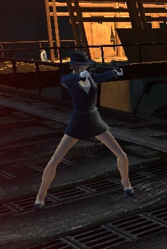 - Tammy Two Guns wears the Wall Street skirt and the Business shirt and shoes with a Fedora hat.